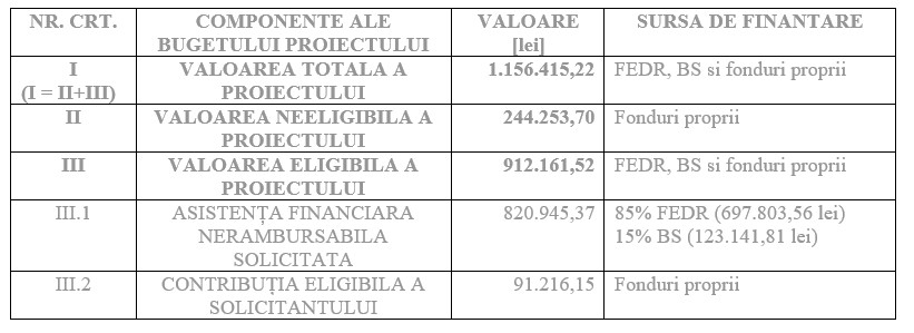 Valoarea totală a proiectului, conform Cererii de finanțare aprobată (defalcată în contribuție UE si națională):